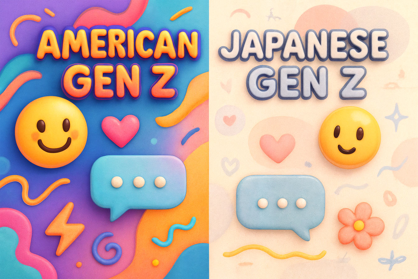 英語のZ世代スラングと日本のZ世代スラングには、いくつかの共通点と違いがあります。例えば、英語のZ世代言葉は、地域や文化を超えて一貫性のある新しい表現方法を示していますが、日本の場合は日本の文化や社会に根付いた独自の表現が多いのが特徴です。